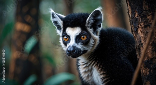 © TheWaterMeloonProjec, Obraz premium Black lemur male, Eulemur macaco, from Madagascar