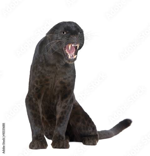 © Eric Isselée, Obraz premium Black Leopard (6 years) in front of a white background