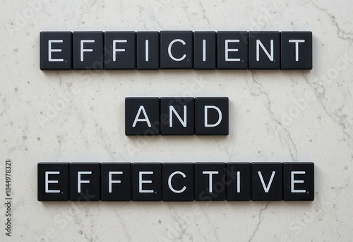 Fototapeta premium Black Letter Tiles Displaying Efficient and Effective on Marble Background