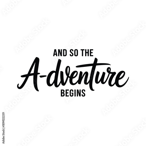 © tarek, Fototapeta premium Black lettering displays the phrase and so the adventure begins on white
