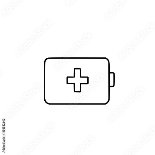 © MdAbu, Obraz premium Black line art, battery with plus sign, white back