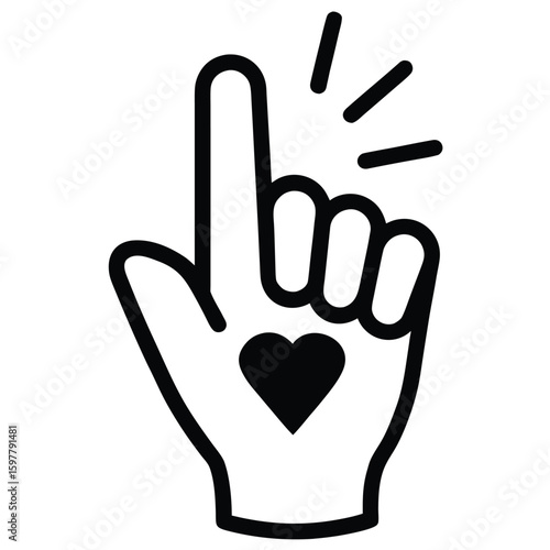 Obraz premium Black line art hand making finger heart gesture with black heart