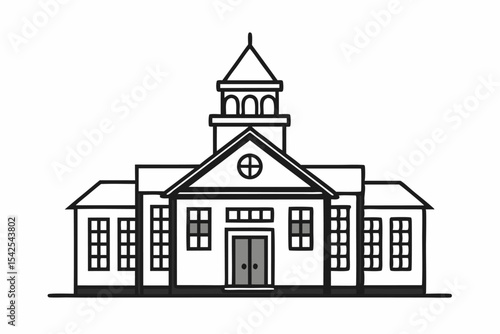 © mrsranuakter, Fototapeta premium Black Line Art Icon Traditional School Building black and white 1