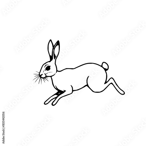Obraz premium Black line art, silhouette of a running hare, whit