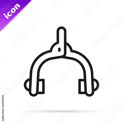Obraz premium Black line Bicycle brake calipers dual pivot icon isolated on white background. Bicycle brake wire. Vector