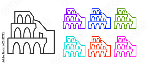Naklejka premium Black line Coliseum in Rome, Italy icon isolated on white background. Colosseum sign. Symbol of Ancient Rome, gladiator fights. Set icons colorful. Vector.