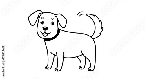 Fototapeta premium Black Line Drawing of a Dog Wagging its Tail