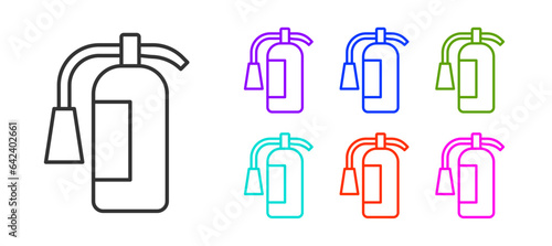Fototapeta premium Black line Fire extinguisher icon isolated on white background. Set icons colorful. Vector