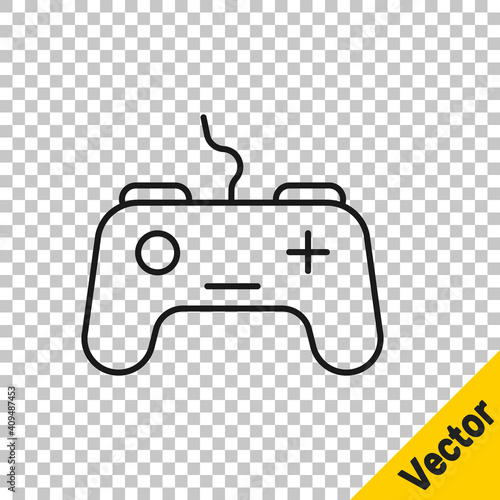 Obraz premium Black line Gamepad icon isolated on transparent background. Game controller. Vector.