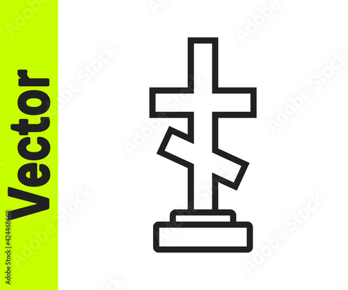 Obraz premium Black line Grave with cross icon isolated on white background. Vector