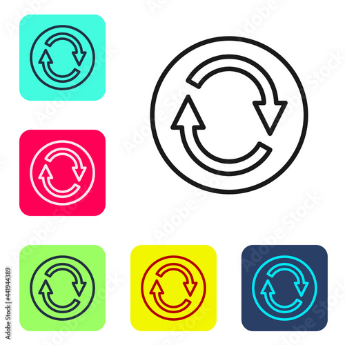 Obraz premium Black line Recycle symbol icon isolated on white background. Circular arrow icon. Environment recyclable go green. Set icons in color square buttons. Vector