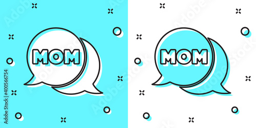 Naklejka premium Black line Speech bubble mom icon isolated on green and white background. Happy mothers day. Random dynamic shapes. Vector.