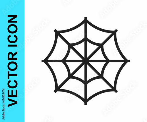 © Iryna, Naklejka premium Black line Spider web icon isolated on white background. Cobweb sign. Happy Halloween party. Vector
