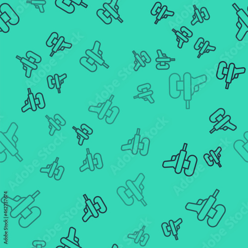 © vector_v, Fototapeta premium Black line Water gun icon isolated seamless pattern on green background. Vector
