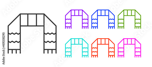 Obraz premium Black line Winter scarf icon isolated on white background. Set icons colorful. Vector.