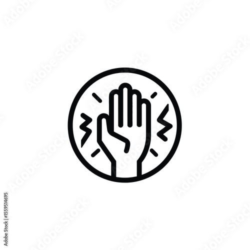 Obraz premium Black linear hand inside circle with lighting sparks on transparent backdrop