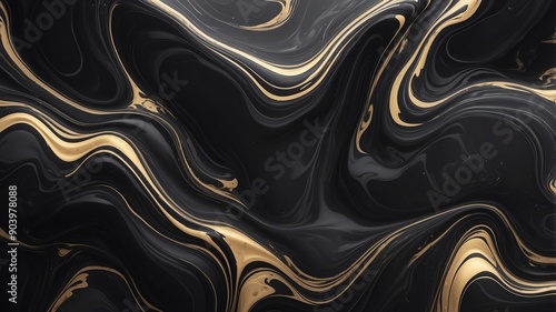 © Arceli, Obraz premium black liquid marble abstract background design backdrop copy space