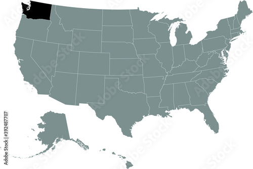 © Momcilo, Fototapeta premium Black location map of US federal state of Washington inside gray map of the United States of America