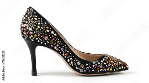 © Maria, Obraz premium black long heel small mirror stones on it isolated on white background
