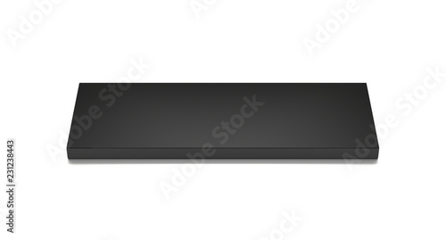 Fototapeta premium Black long horizontal thin blank box from front top angle. 3D illustration...