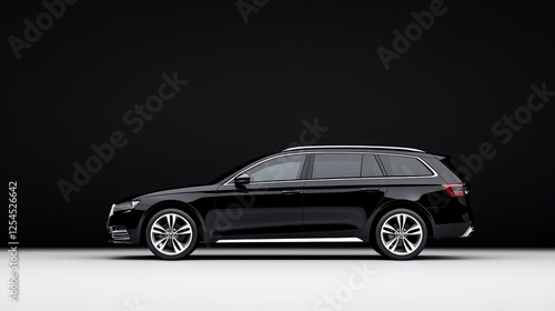 Fototapeta premium Black luxury station wagon, side profile, dark studio. Transport advertisement