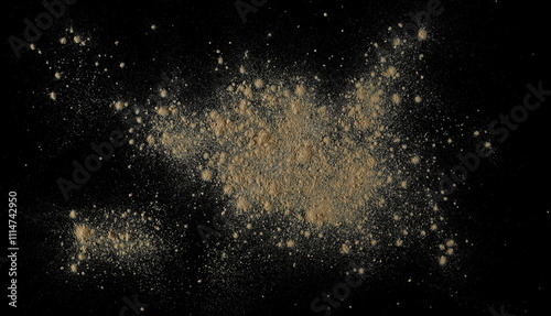 © dule964, Fototapeta premium Black maca organic powder scattered isolated, top view