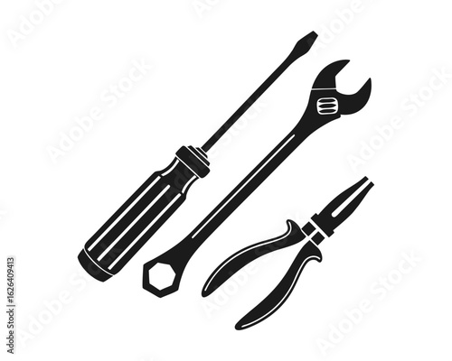 Naklejka premium Black machine tools silhouette vector