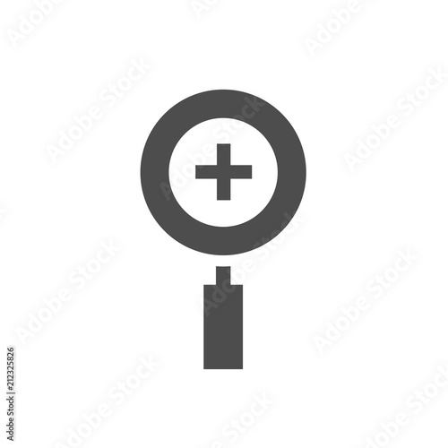 © Ne Mariya, Fototapeta premium Black magnifier with plus sign isolated on white. Magnifying glass icon. Zoom button for web pages.