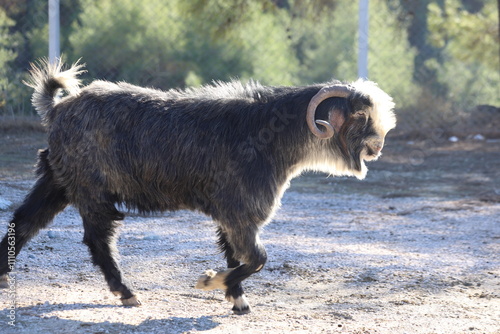 © UMIT, Fototapeta premium black male goats on the way to grazing field