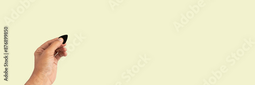 © TropicalNinjaStudio, Obraz premium Black male hand holding a USB charger plug isolated on light green background