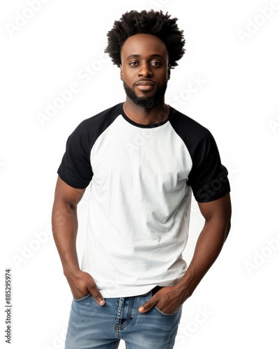 Fototapeta premium black male model with hands in pockets raglan shirt