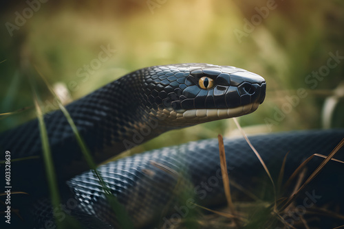 © PIRMYN, Fototapeta premium Black mamba in nature. Generative AI