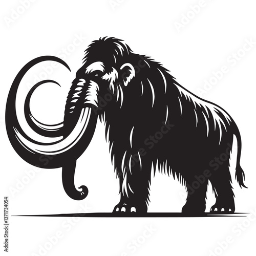 Obraz premium Black Mammoth Silhouette Vector, High Quality Illustration on White Background