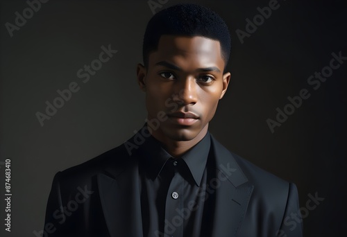 © 月 明, Fototapeta premium Black man in suit on clean background