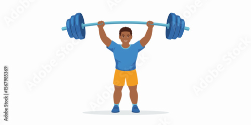 Fototapeta premium Black man lifting weights barbell, one person, vector illustration, athlete, fitness, exercise, workout, gym, training, sport