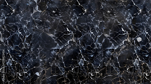 © tfk, Obraz premium Black marble background with intricate gray veins, high contrast, generative ai