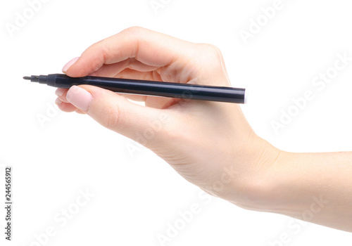 © Kabardins photo, Naklejka premium Black marker in hand on white background isolation