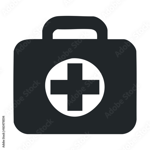 Obraz premium Black medical first aid kit icon with cross symbol on white background