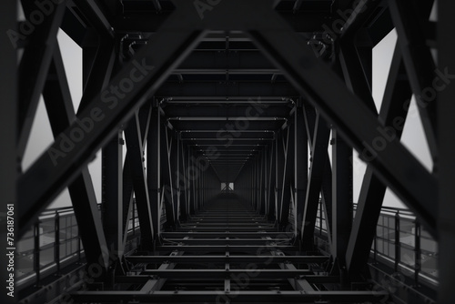 © Artem, Fototapeta premium Black metal bridge jacking structure. Background image. Created with Generative AI technology