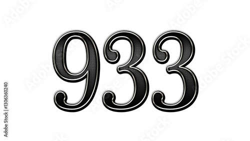 Fototapeta premium black metal 3d design of number 933 on white background.