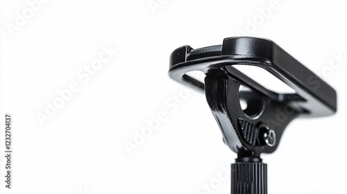 Obraz premium Black metal tripod mount detail against white background, for photography or...
