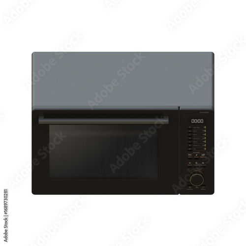 © Samlakodad, Fototapeta premium Black Microwave Top Front View 3D Render Illustration