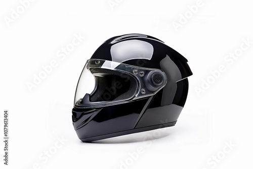 © Poetra RH, Fototapeta premium Black modular motorcycle helmet on isolated white background.