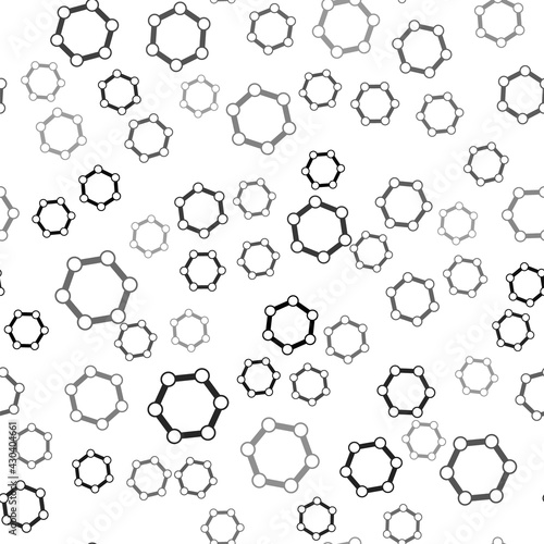 Fototapeta premium Black Molecule icon isolated seamless pattern on white background. Structure...