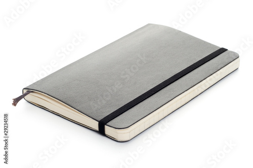 © Mazur Travel, Naklejka premium Black Moleskine notebook on white background