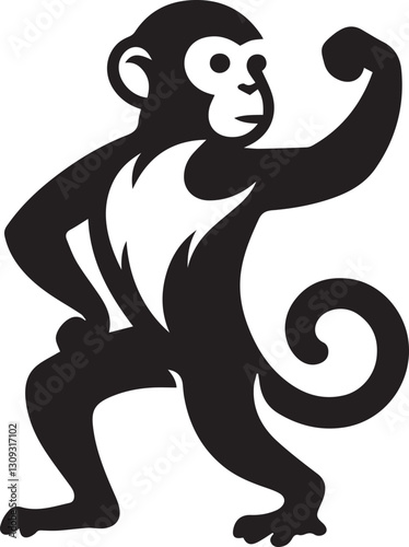 Obraz premium black monkey clip art vector, monkey silhouette vector, monkey vector illustration, monkey logo vector, monkey vector icon, monkey silhouette vector isolated on white background full body