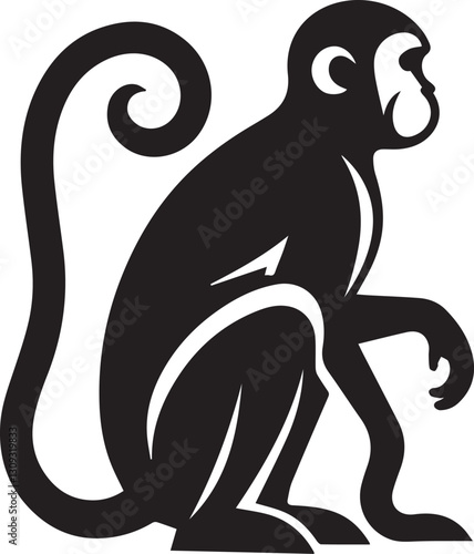 Obraz premium black monkey clip art vector, monkey silhouette vector, monkey vector illustration, monkey logo vector, monkey vector icon, monkey silhouette vector isolated on white background full body