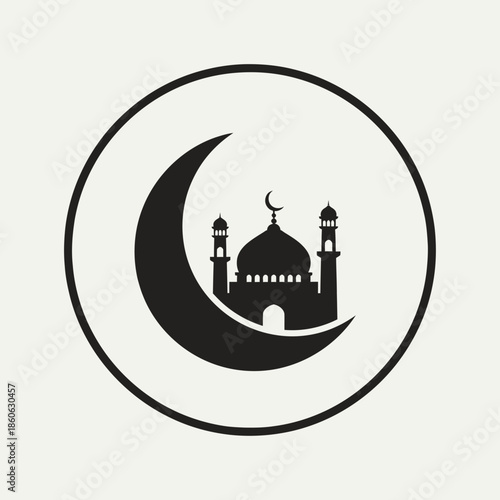 © sitimunirotul, Obraz premium Black mosque icon with crescent moon.