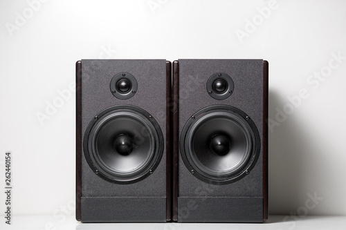 Fototapeta premium Black music speakers. Speaker range. On white background.