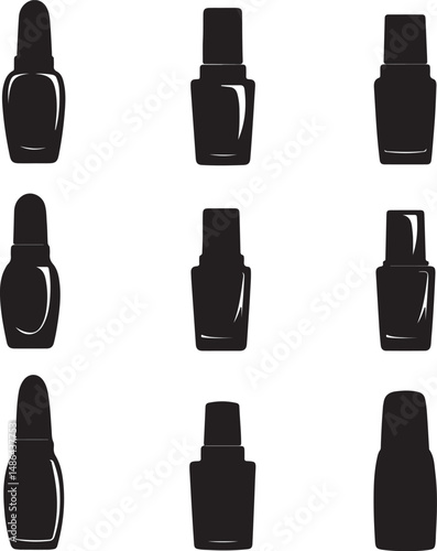 Fototapeta premium Black Nail Polish Bottles Silhouettes Set on White Background
